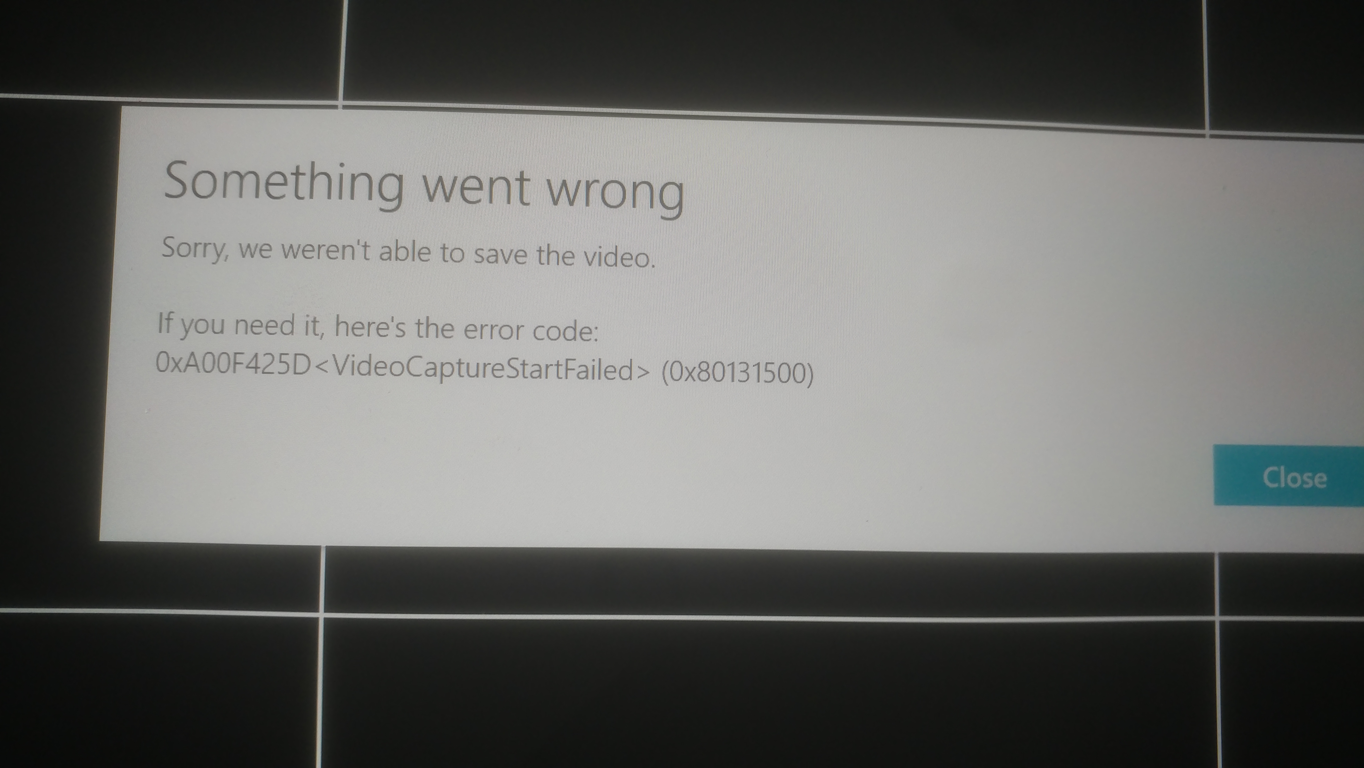 Try to record some video again using the Camera application to check for the error 0xA00F425D (0x80131500) VideoCaptureStartFailed.