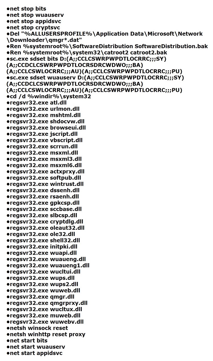 In the network, you can find a bunch of different “batch files” that contain commands for resetting. Now we will give you a series of commands to create a .bat file. All you need to do is insert the following commands into the most common text file, change the extension to .bat and run it, and then the automatic update center will start automatically.