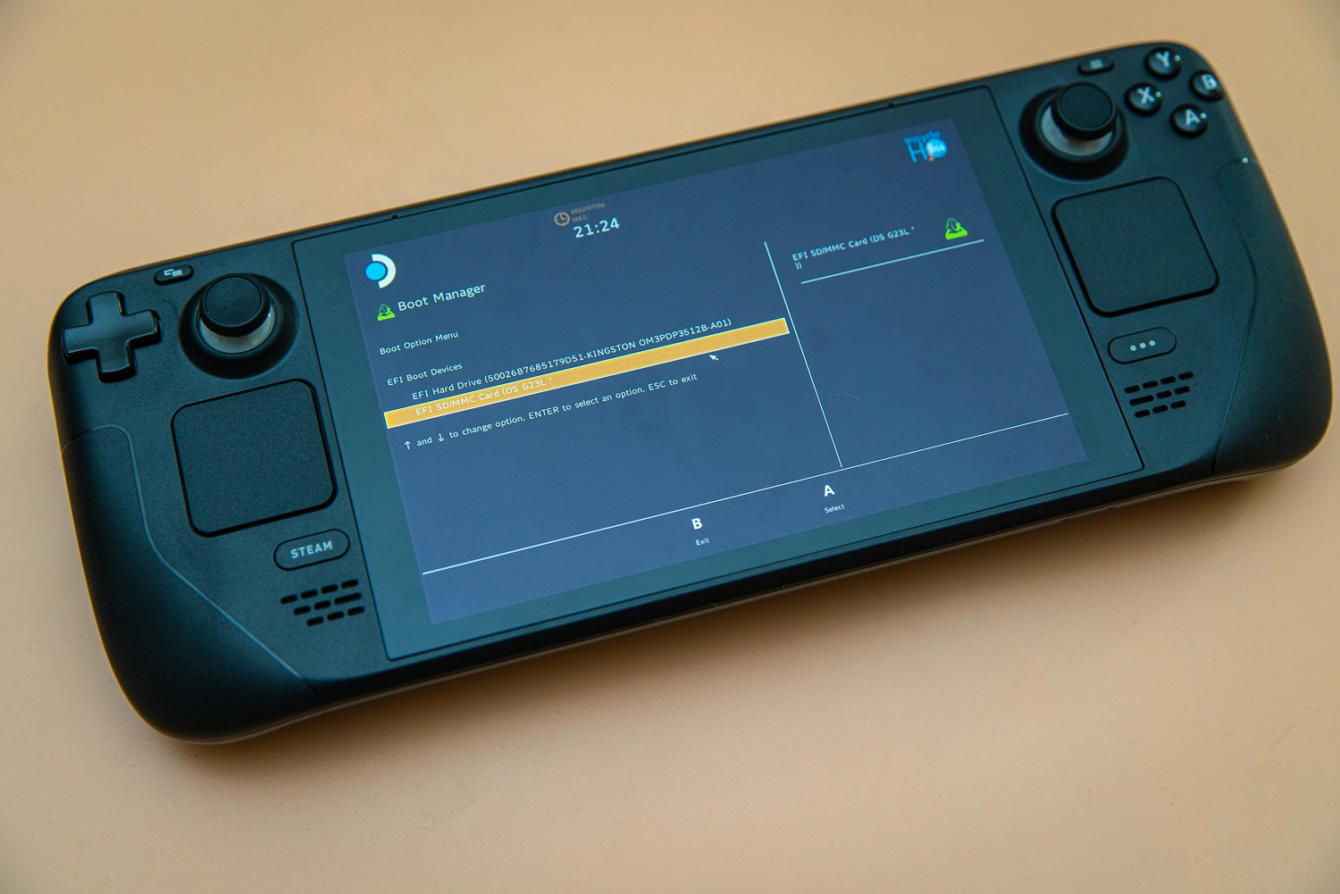 - Turn on the Steam Deck and press F2 or whatever specific function key you use to enter the BIOS system menu.